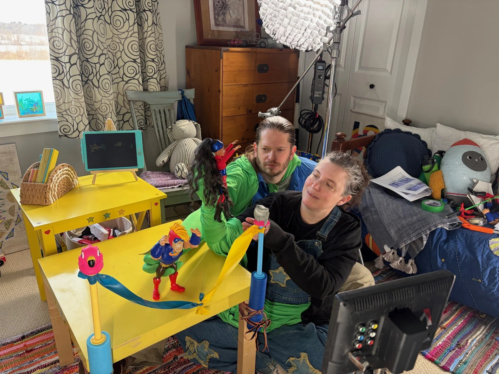 Behind the scenes during the creation of HeroDoll and SuperDude Save the Universe